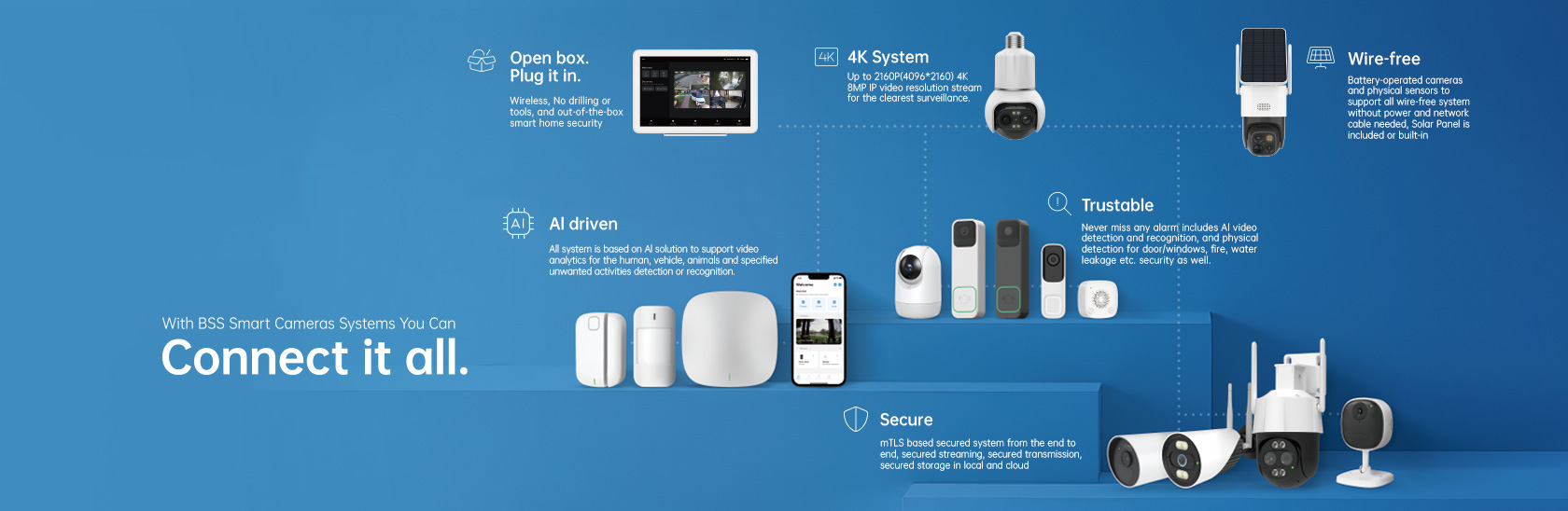 Cameras with powerful AI for multiple scenarios,wide range from 2MP to 16MP, POE/WiFi/4G.